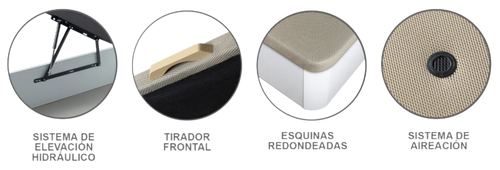 Su estructura reforzada con barras de acero y su fondo de alta durabilidad proporcionan una base sólida. Incorpora un baúl con 28 cm de altura interior, perfecto para organizar ropa de cama, maletas u otros objetos.
